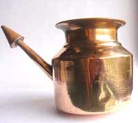 一般的に、銅の容器にいれた水をインドではたいへん高く評価していますが、その理由は、水の中に存在するバクテリアを数時間で殺菌することができるからです。 私自身も毎日純銅製の水差しにいれた水を飲み、料理にも使ってます。 銅繊維が水に触れると、ごくわずかな銅イオンが発生、残留塩素を消し、キレイな水に除菌してくれます。腸の蠕動運動を促進し、便通を良くします。 また、銅で作られたタング・クリーナー(舌の清掃)で、舌苔(ぜったい)に付着する毒素(アーマ)を取り除く事が健康維持の秘訣であるともいわれています。 銅は空気中や水中にあるバクテリアを殺菌するかわりに、交換作用として、汚れなどが付着します。一週間に1-2度ほど、自然酢で付着した汚れを落とすことがすすめられています。そうすれば、常に100%の抗菌作用を水にもたらすことができ、それを飲んだ人の健康におおいに役立つことができるでしょう。 銅は、動植物においては重要な微量元素であり、銅の役割としては、ヘモグロビンを合成するために不可欠である元素であることが知られています。 人体には体重1 kgあたりおよそ1.4から2.1 mgの銅が含まれ、腸で吸収され、その後肝臓に輸送されます。 抗菌効果の研究において、A型インフルエンザウイルスやアデノウイルス、菌類だけでなく広範囲に渡る細菌を滅菌するための銅の有効性について研究されてきました。 銅合金表面の表面には広範囲の微生物を滅菌する固有の能力があり、定期的に洗浄していれば2時間以内に病原菌の99.9 %以上が滅菌されると証明されました。 銅の使用には少なくとも1万年の歴史があり、紀元前9000年の中東で利用されはじめたと推測されています。 銅の文化的な役割は、特に流通において重要でした(銅貨)。 現代の日本の硬貨においても、5円硬貨が黄銅、10円硬貨が青銅、50円硬貨、100円硬貨、旧500円硬貨が白銅、新500円玉がニッケル黄銅という銅の合金が用いられています。 古代インドにおいて銅は、アーユルヴェーダにおいて外科用器具および他の医療用器具のために用いられました。 紀元前2400年の古代エジプト人は傷や飲料水の殺菌のために銅を利用し、後には頭痛、火傷、かゆみにも用いられました。 銅には微量金属作用(銅イオン作用)という、水に混ざるだけで驚異的な殺菌作用を発揮する性質があります。この銅イオンの働きが微生物の発生を防ぎ抗菌効果を発揮すると言われています。 「銅のカップにいれた水を翌朝飲むと健康によい」、とアーユルヴェーダの医者が言いました。 -アーユルヴェーダの銅製品はサフランロードから入手できます - |